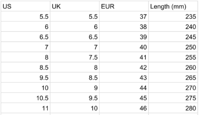 | Shoe Size |